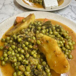 Αρακάς με πατάτες και καρότα μαγειρεμένος στην κατσαρόλα φυσικά με γλυκιά πάπρικα άνηθο και κρεμμυδάκι φρέσκο