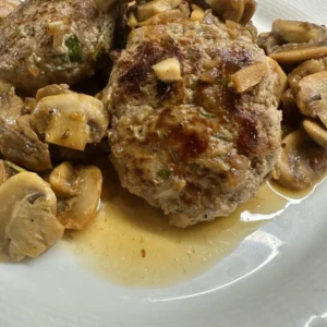 Μπιφτέκια με μανιτάρια κρασάτα στο αντικολλητικό τηγάνι με λευκό ημίγλυκο κρασί και βουτυράτη υφή