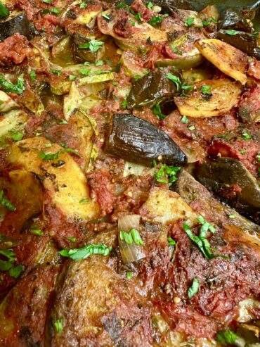Μπριάμ με 3 είδη μελιτζάνας ! Τσακώνικες φλάσκες και λευκές μελιτζάνες σε συνδιασμό με πατάτες και κολοκυθάκια με φρέσκια ντομάτα !