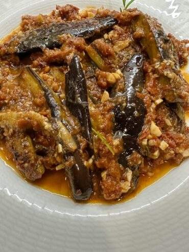 Μελιτζάνες στιφάδο με φρέσκα ολόκληρα κρεμμυδάκια με πλούσια γεύση μπαχαρικών και δεντρολίβανο !