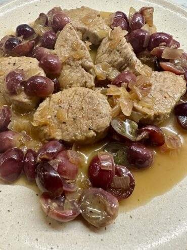 Ψαρονέφρι σβησμένο με κρασί και σταφύλια