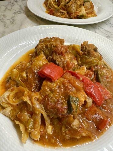 Χοιρινό μαγειρεμένο με λάχανο και πιπεριά κόκκινη Ονειρεμένη σάλτσα ντομάτας με σκόρδο και μπαχαρικά