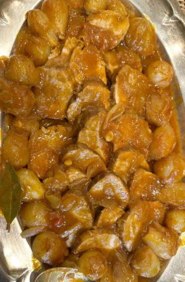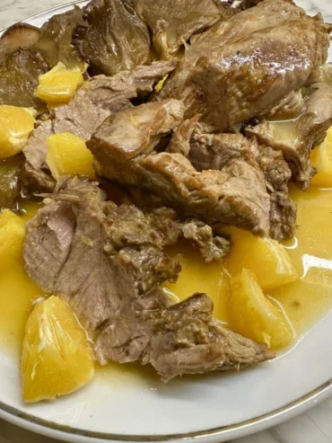 Μοσχαράκι Λεμονάτο με πατάτες τηγανιτές στην κατσαρόλα