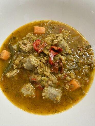 Κοτόσουπα κοκκινιστή με λαχανικά και κριθαράκι