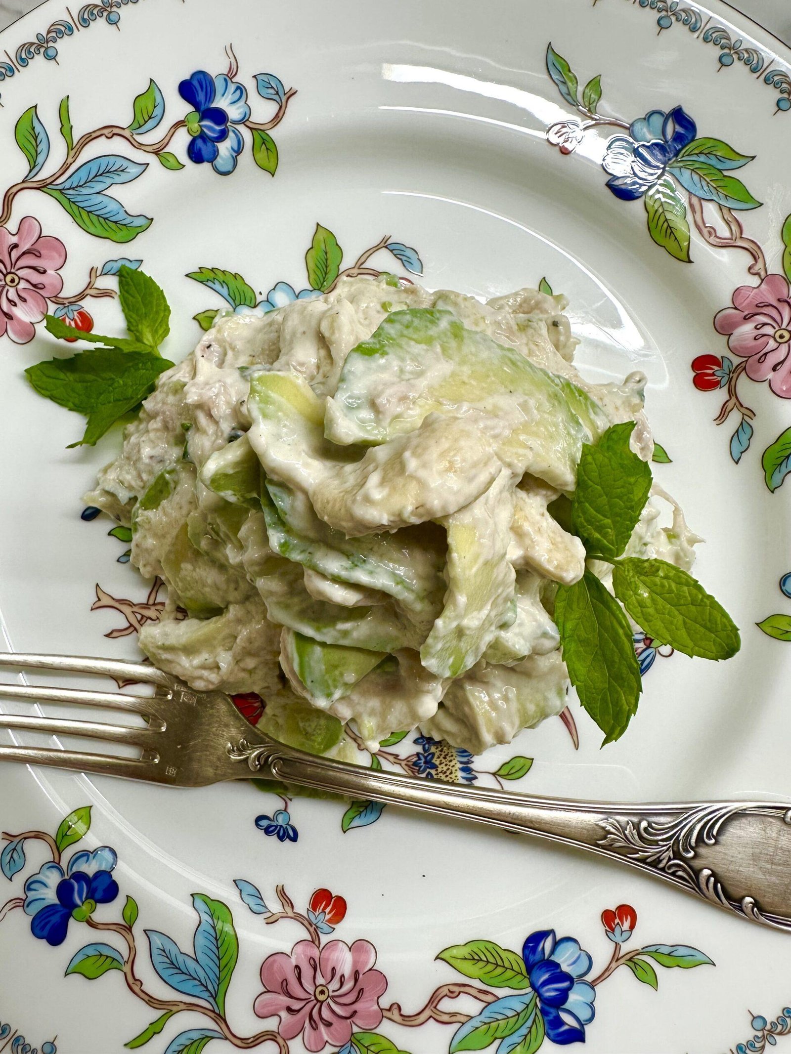 Μια δροσερή κοτοσαλάτα με γιαούρτι και αβοκάντο κάσιους κουκουνάρι και σουσάμι , σερβίρετε παγωμένη και για κυρίως γεύμα !