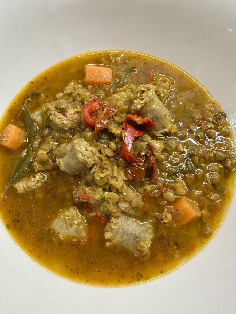 Φακές σούπα με λουκάνικο με λιαστή ντομάτα και πιπεριά Φλωρίνης μια διαφορετική εκδοχή τις παραδοσιακής συνταγής !