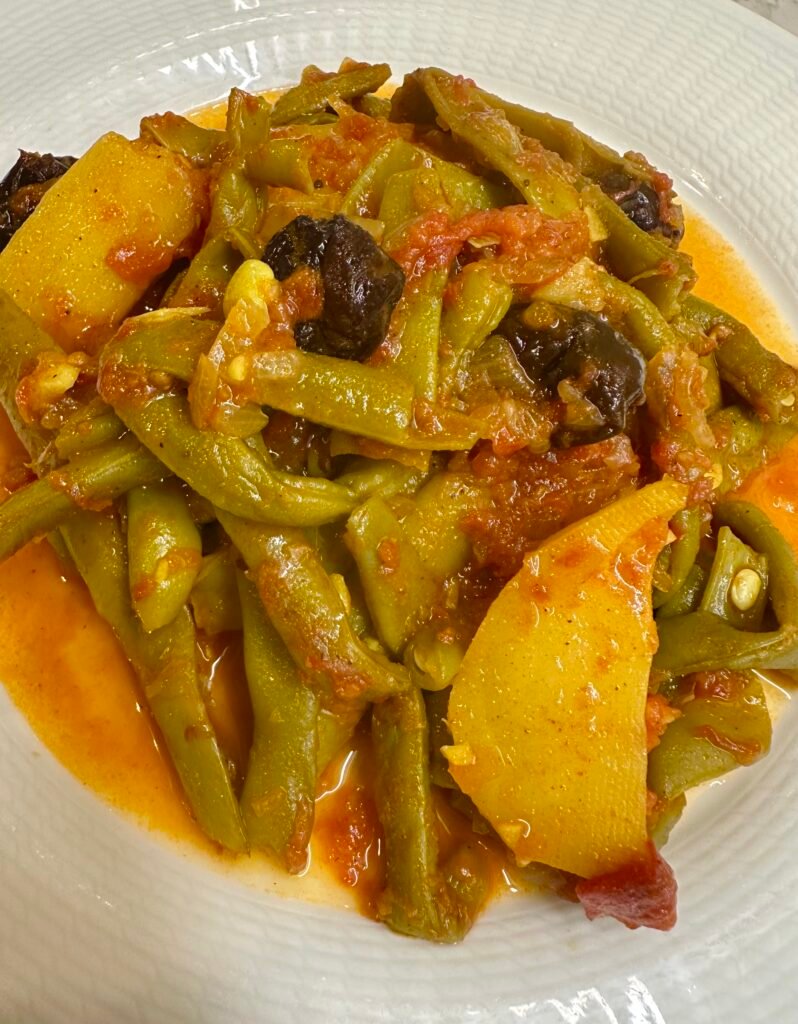 Φασολάκια με πατάτες και δαμάσκηνα μαγειρεμένα στην κατσαρόλα