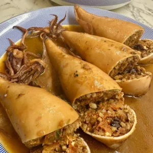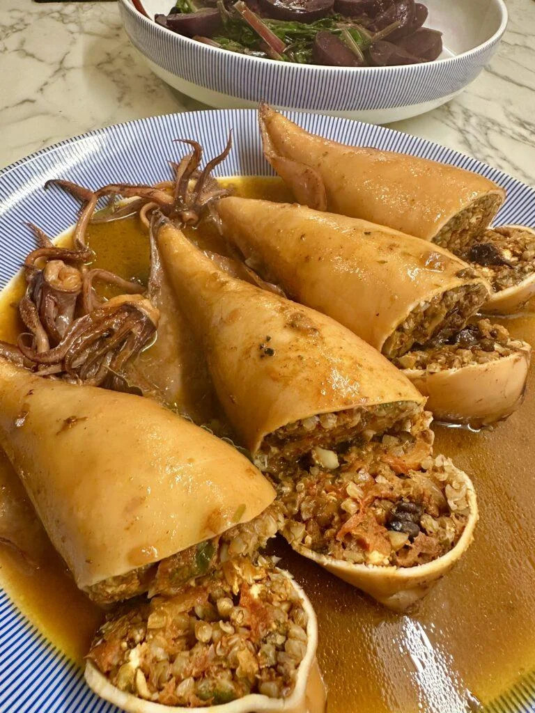 Καλαμάρια στον φούρνο γεμιστά με Φαγόπυρο φέτα και μυρωδικά