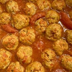Κεφτεδάκια Γαλοπούλας μαγειρεμένα σε σάλτσα ντομάτας με σκόρδο και βασιλικό