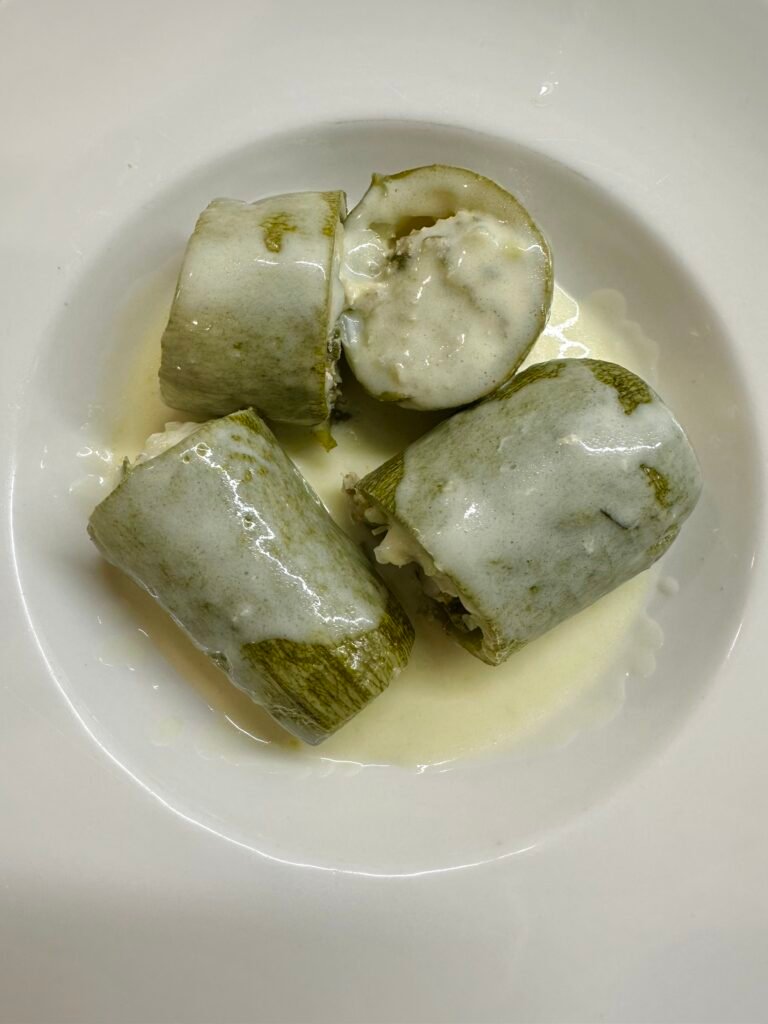 Κολοκυθάκια γεμιστά με κιμά γαλοπούλας και ρύζι αυγολέμονο