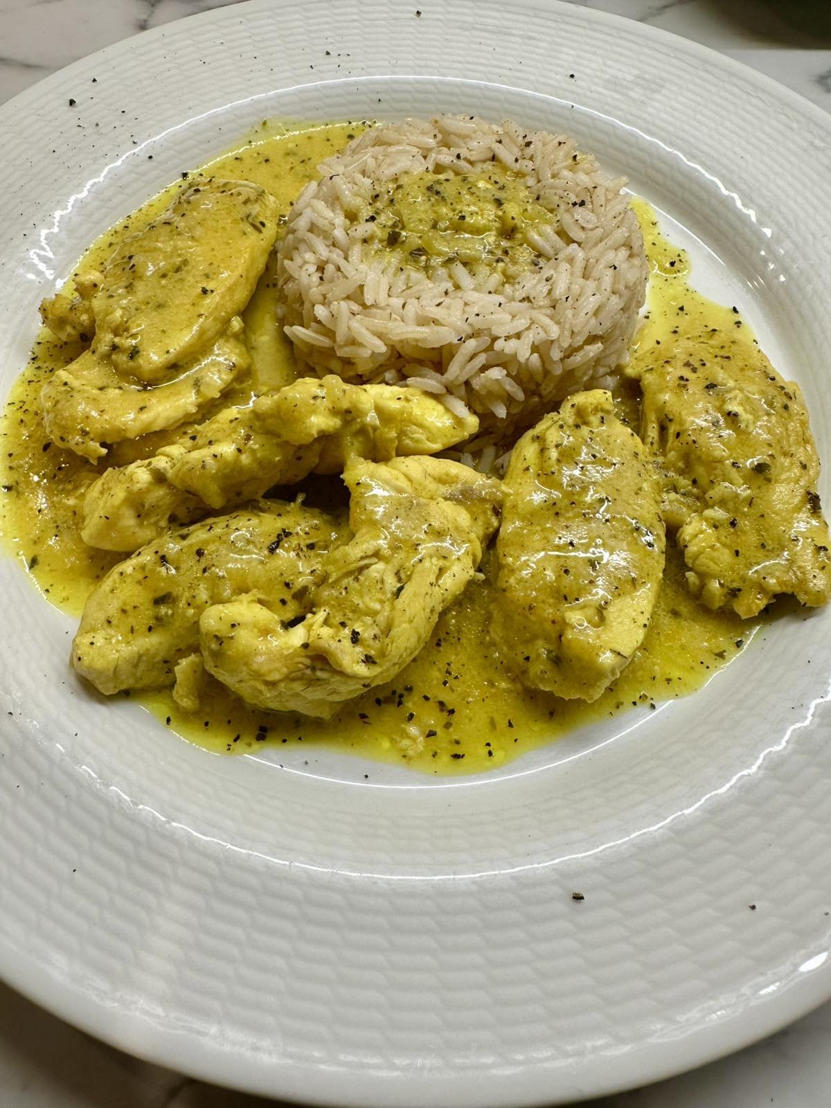 Σιγομαγειρεμένα φιλετάκια κοτόπουλο σκορδάτα με πλούσια σάλτσα μουστάρδας ,άρωμα πορτοκαλιού