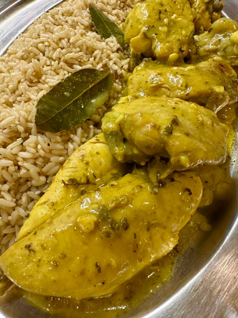 - Σε μία πιατέλα σερβίρουμε το ρύζι και το κοτόπουλο αφήνοντας το ζωμό του στην κατσαρόλα