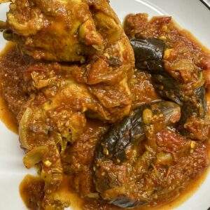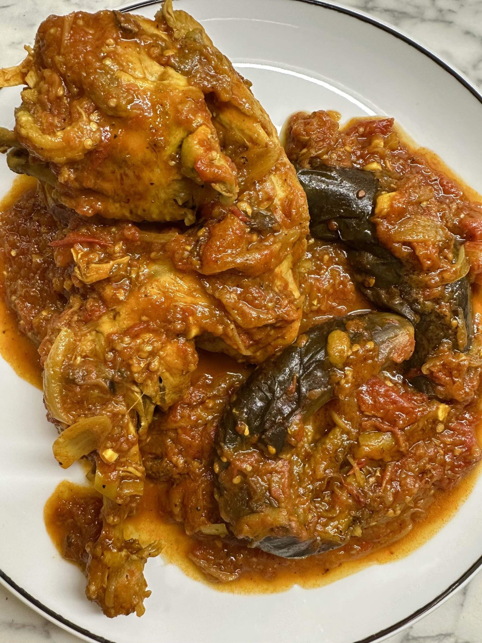 Κοτόπουλο κοκκινιστό με μελιτζάνες