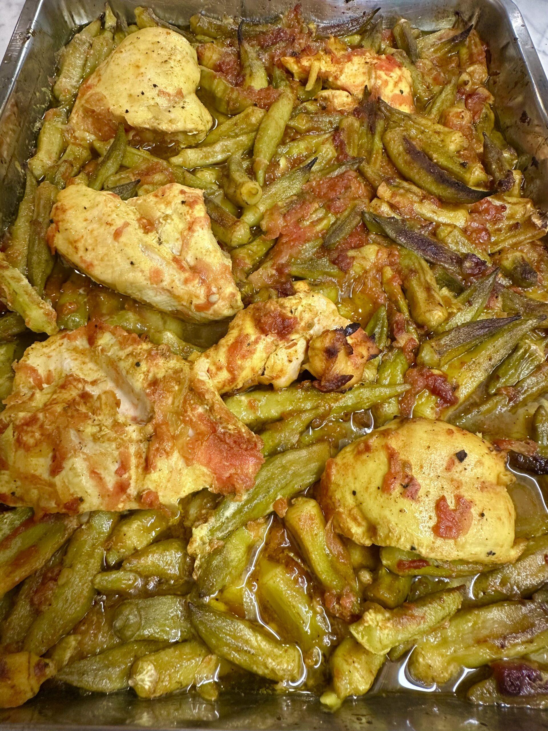 Φιλέτο κοτόπουλο με μπάμιες στον φούρνο