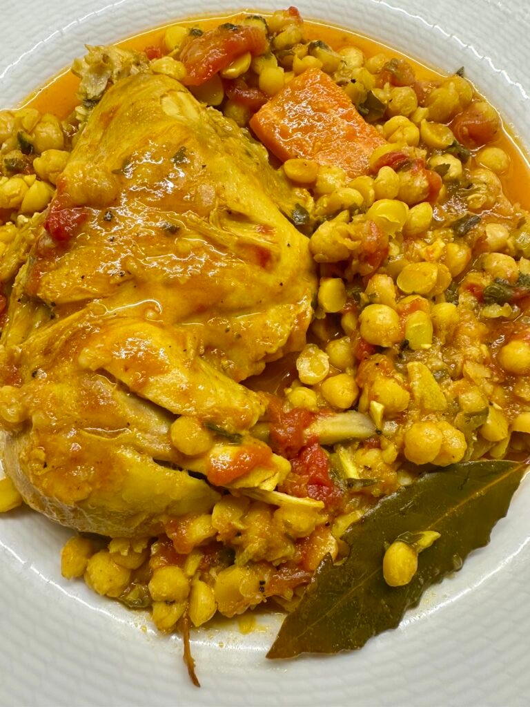 Κοτόπουλο μαγειρεμένο με ρεβίθια στην κατσαρόλα με μπαχαρικά και μυρωδικά !