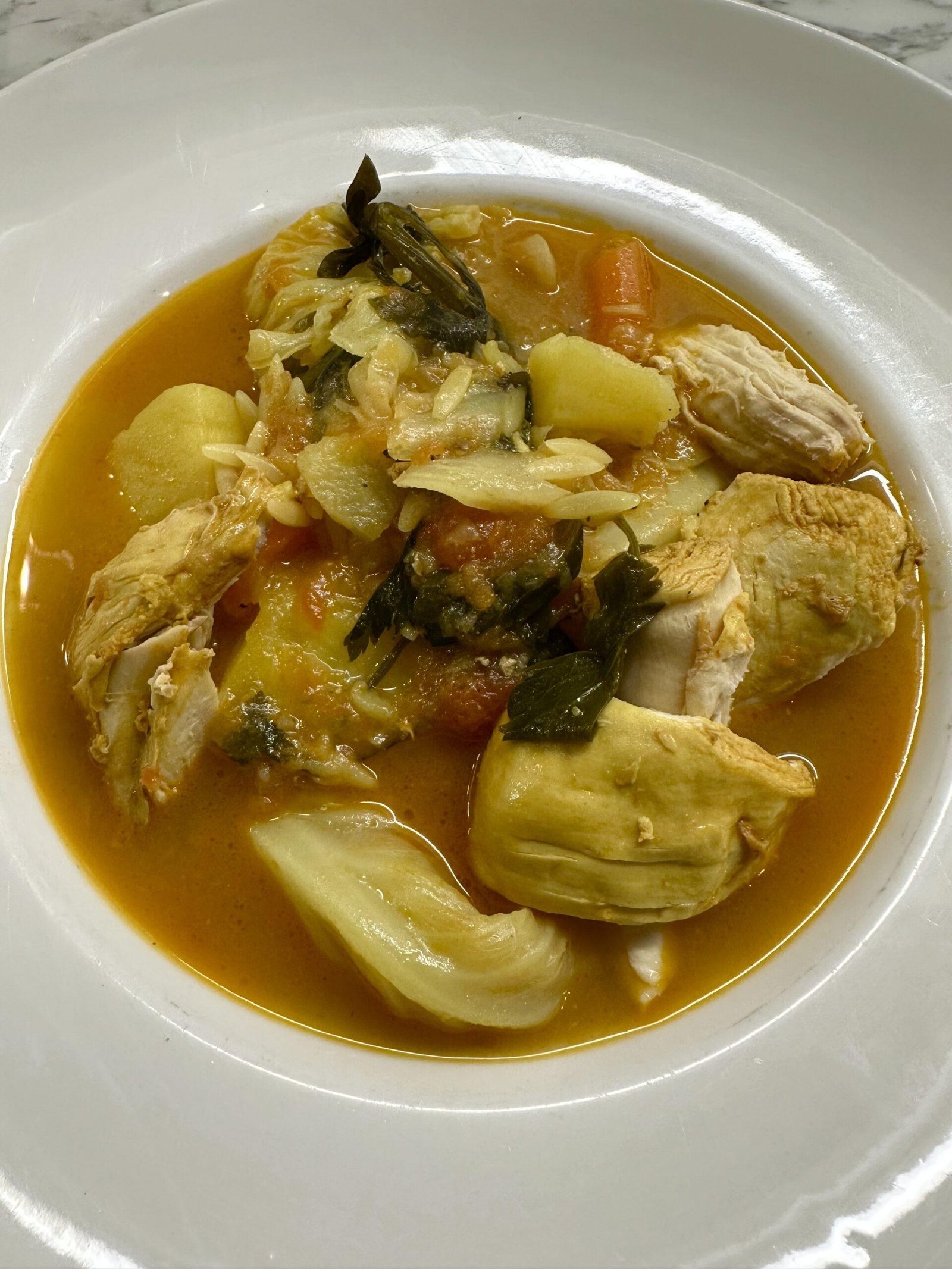 Κοτόσουπα κοκκινιστή με λαχανικά και κριθαράκι