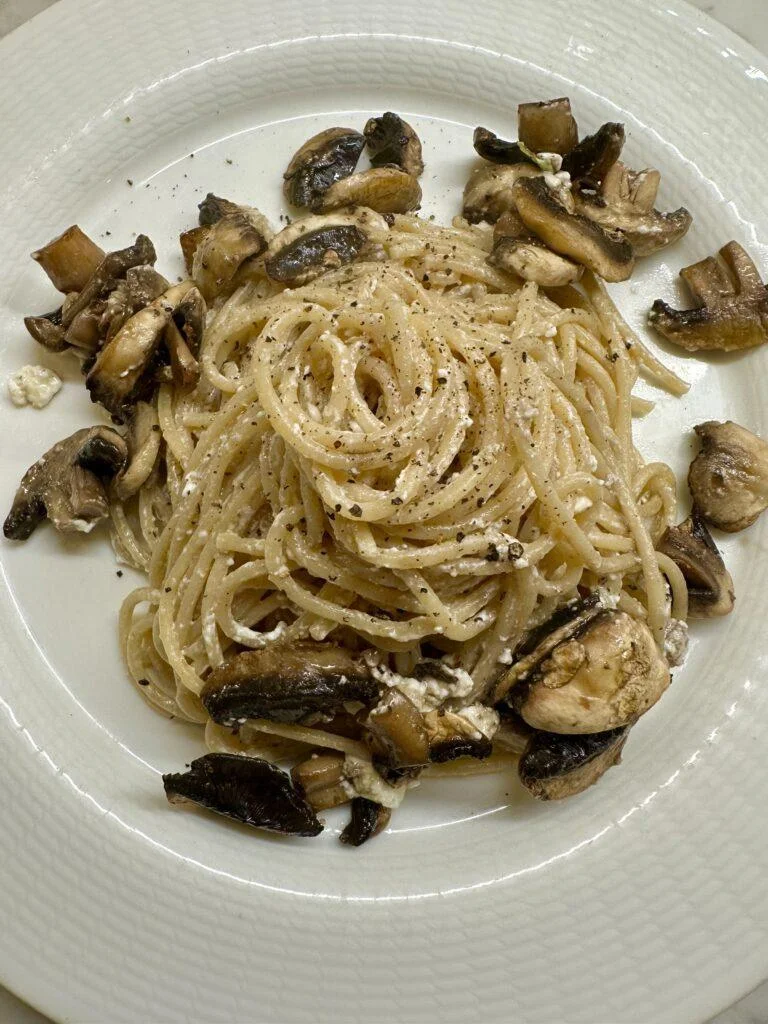 Μακαρονάδα με μυζήθρα και μανιτάρια