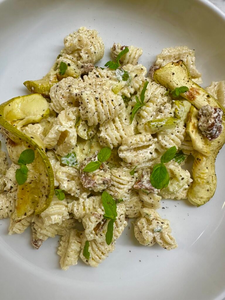 Μακαρονοσαλάτα με κολοκυθάκια και λιαστές ντομάτες !Δροσερό dressing γιαουρτιού με lime