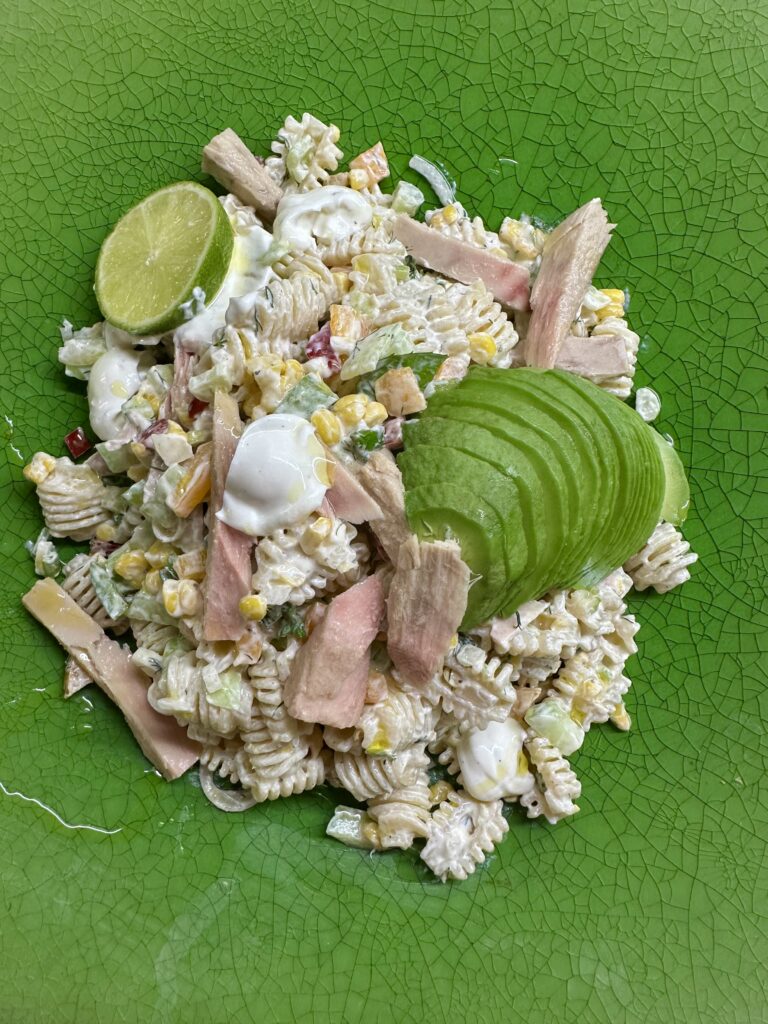 Μακαρονοσαλάτα με τόνο , αβοκάντο , ποικιλία λαχανικών και dressing από γιαούρτι !