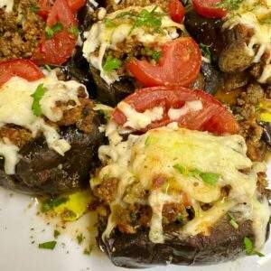 Μελιτζάνες παπουτσάκια με κασέρι Μυτιλήνης και ντομάτα !