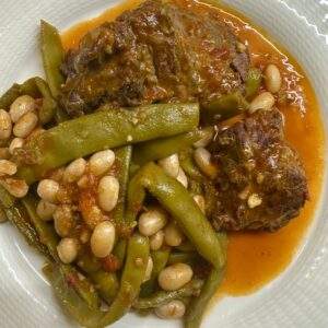 Μοσχαράκι κοκκινιστό με φασολάκια και χάντρες !