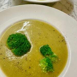 - Σερβίρουμε σε βαθιά πιάτα την σούπα και μοιράζουμε από λίγο μπρόκολο στο κάθε ένα