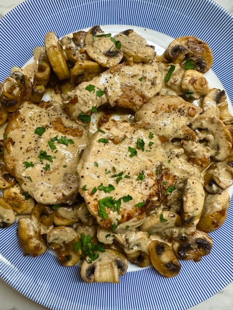 Χοιρινές μπριζόλες με μανιτάρια και σάλτσα μπύρας !