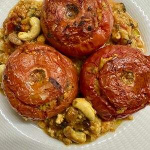 Ντομάτες Γεμιστές με κιμά γαλοπούλας σταφίδες και κάσιους