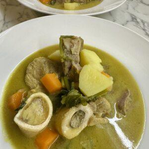 Οσομπούκο βραστό με λαχανικά μπόλικο σέλινο καρότα και πατάτες , ζεστή αχνιστή σούπα του Χειμώνα