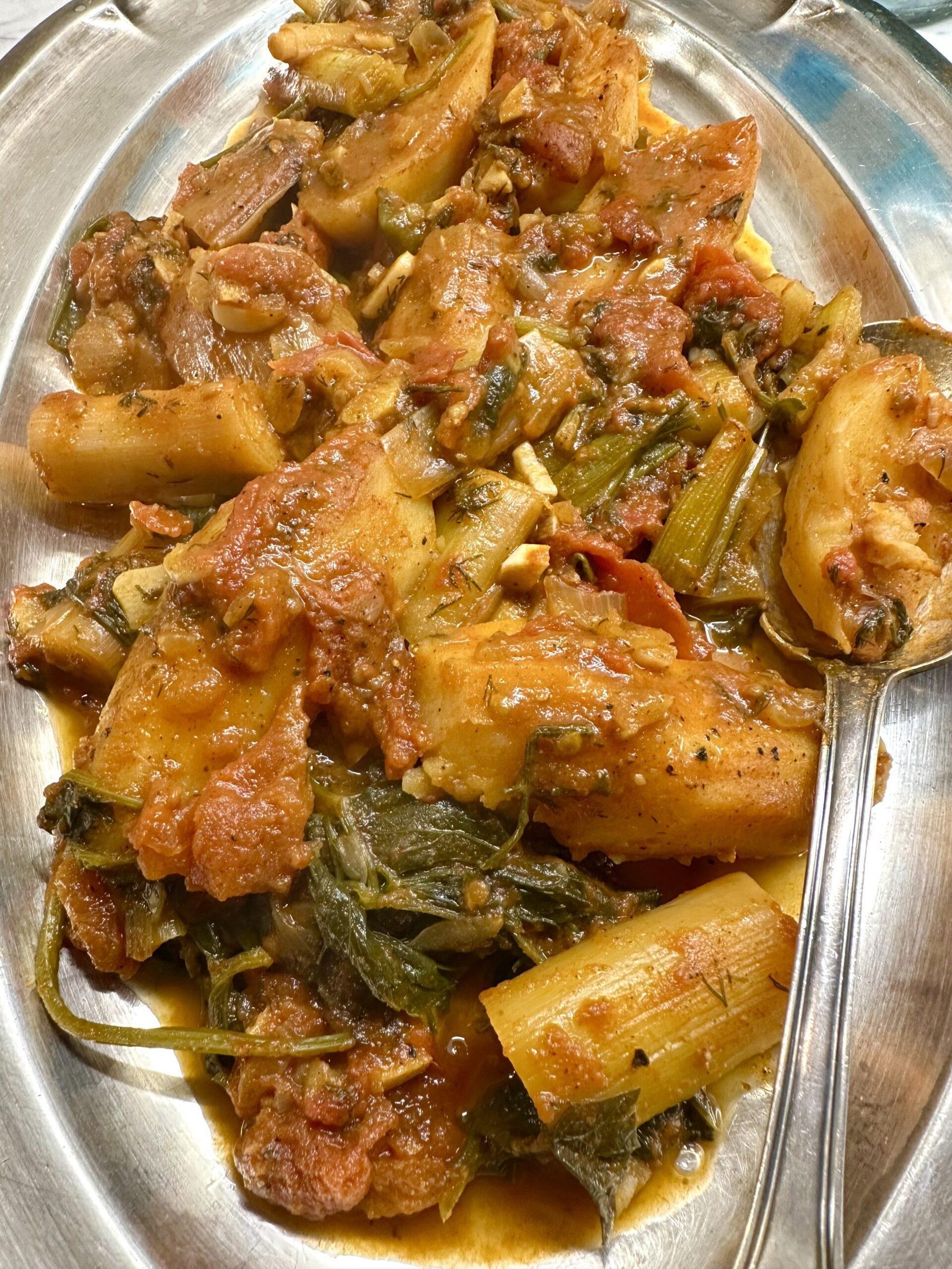 Πατάτες Πρασοσέλινο στην κατσαρόλα κοκκινιστές
