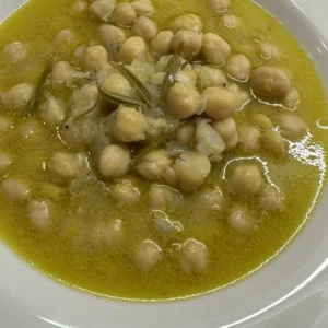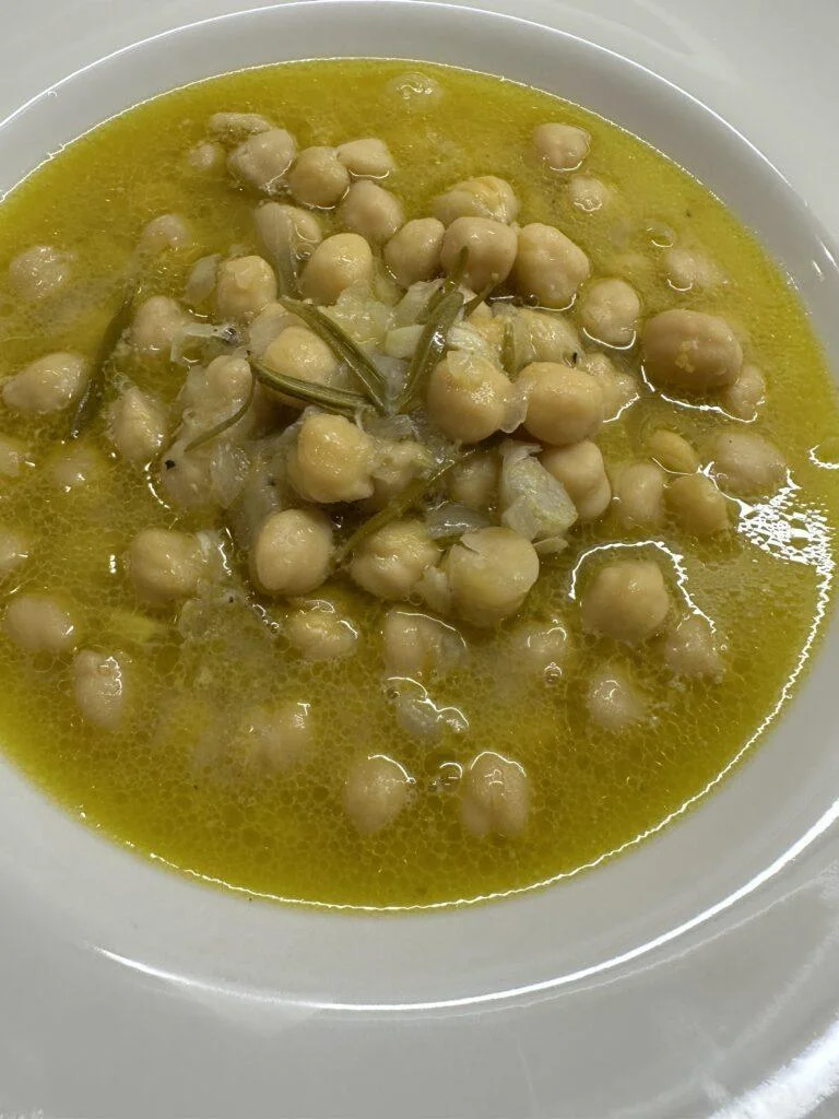 Ρεβίθια σε σούπα σβησμένα με λευκό κρασί και δεντρολίβανο