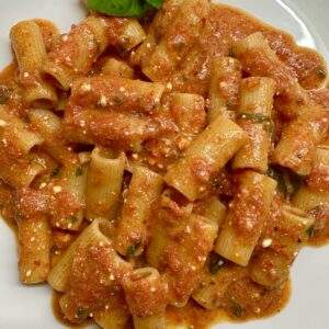 Ριγκατόνι με σάλτσα ξινομυζήθρας και βασιλικό