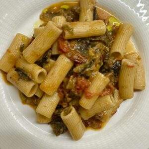 Ριγκατόνι με ψητή μελιτζάνα , μανιτάρια και λιαστές ντομάτες !