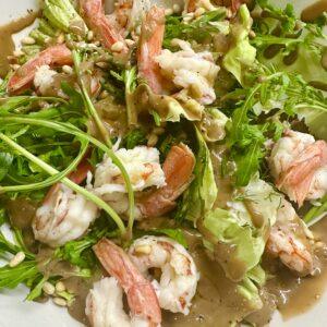Πράσινη σαλάτα με γαρίδες και dressing μελιού
