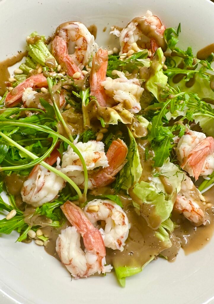 Πράσινη σαλάτα με γαρίδες και dressing μελιού