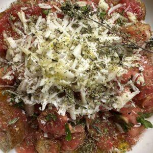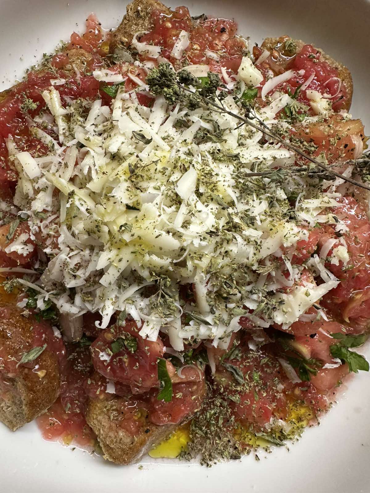 Η πιο λαχταριστή δροσερή σαλάτα του καλοκαιριού με κριθαρένια παξιμάδια φρέσκια τριμμένη ντομάτα και τριμμένη γραβιέρα Μυτιλήνης . Ένα πλήρες γεύμα πεντανόστιμο και γρήγορο !