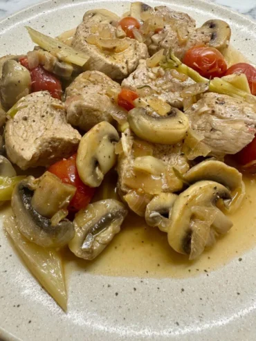 Ψαρονέφρι με λαχανικά σβησμένο με κονιάκ