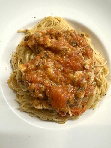 Μακαρονάδα με τόνο φρέσκια ντομάτα βασιλικό και κάπαρη !
