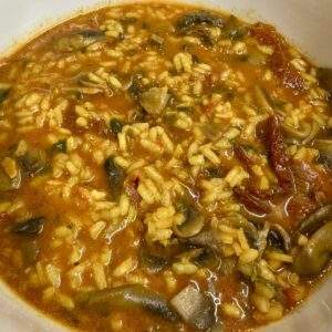 Ζουμερό Ριζότο με μανιτάρια και λιαστές ντομάτες